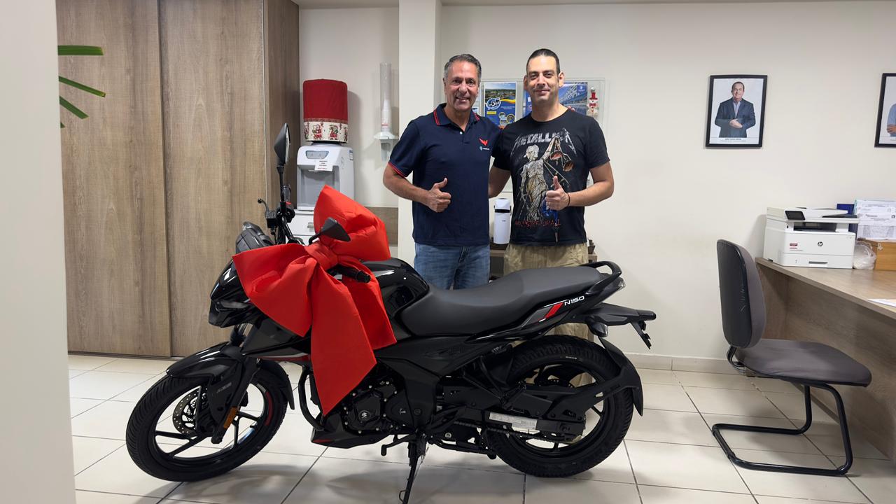 O comerciário José Gonçalves Júnior, de Atibaia, já está com a moto zero km que ganhou no último sorteio da Campanha de Sindicalização 2025. Mais de 3 mil comerciários estavam concorrendo ao prêmio e José foi o grande ganhador.