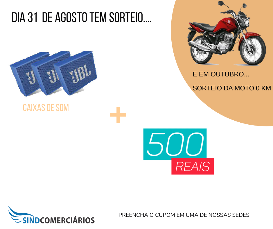 Dia 31 acontecerá mais um sorteio da Campanha Permanente de Sindicalização. serão: 3 caixas de som e um vale-compra no valor de R$ 500,00 para gastar onde quiser.